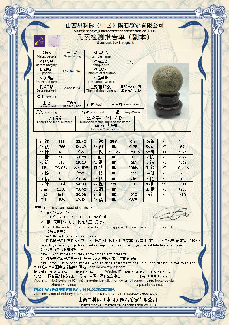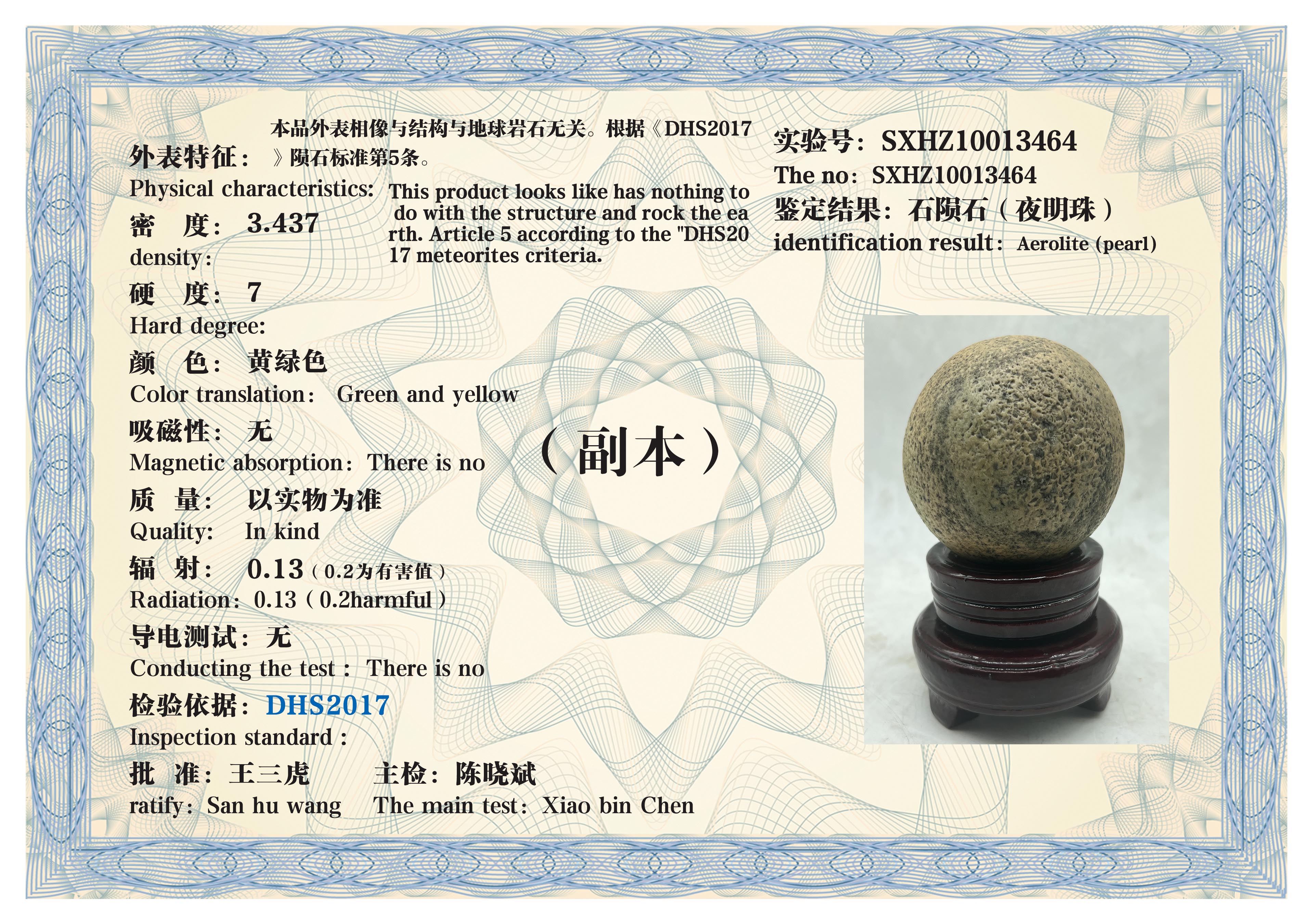 S0003 石陨石夜明珠 有陨石证书副本 价格面议 有意者联系 :13836861792
